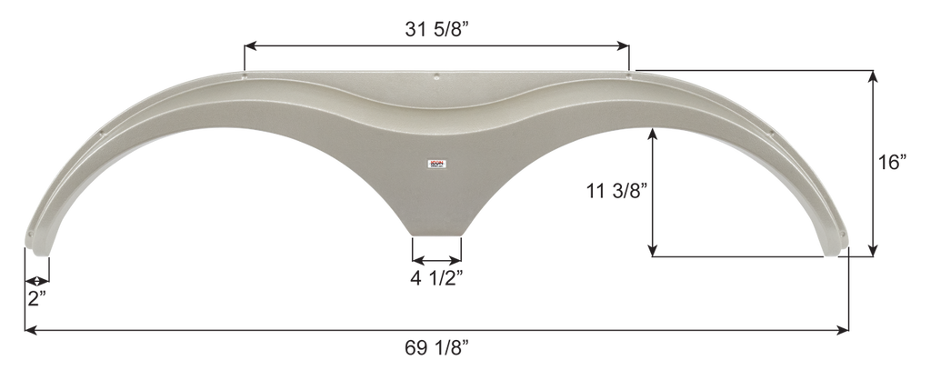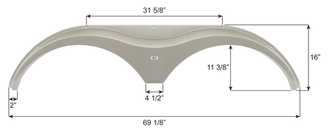 69 1/8" x 16" - Polar White tandem axle fender skirts. Constructed of durable, high-impact ABS plastic. This replacement fender skirt is textured.